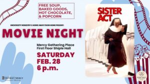 University Ministry and Home Away From Home will host a movie night on Saturday, Feb. 28, at 6 p.m. The classic comedy Sister Act (1992) will be shown in the Mercy Gathering Place, located on the first floor of Shiple Hall.