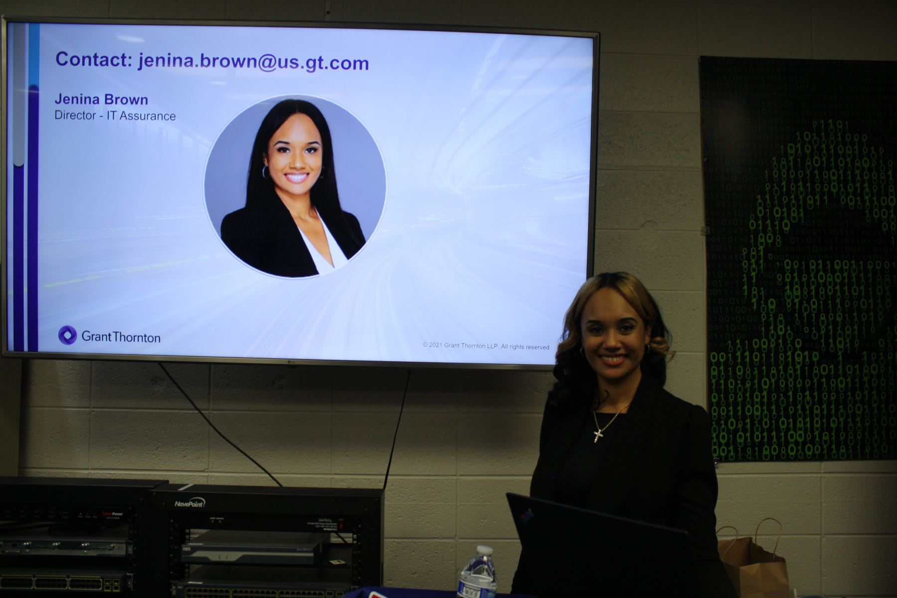 Detroit Mercy alumna and ISACA Board Member Jenina Brown returned to campus to deliver an informative presentation on Cybersecurity Auditing. Drawing from her extensive professional experience, Jenina provided club members with practical insights into the auditing side of cybersecurity. Her presentation detailed the role of auditors in protecting organizational assets and discussed various career pathways in auditing.