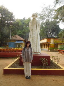 Above: Photos from Santiniketan, Bengal, India in 2025. Tagore statue and buildings, and photo with Deen Chatterjee and Asha Mukherjee.