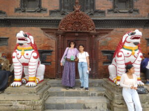 Visiting the Kumari – living Goddess, with Juhi; Buddhist temple with Janet Gerson, Eamon Rafter and others